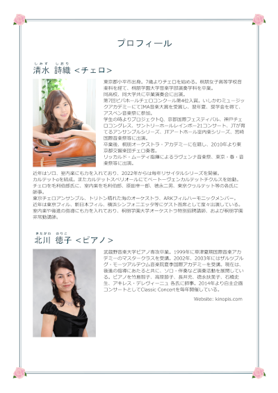 東京都交響楽団のチェロ奏者、清水詩織さんをお迎えしてコンサートを行います。